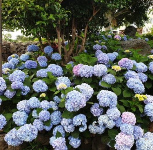 제주는 우리나라 최남단에 위치하고 있어 수국이 우리나라에서 가장 빨리 개화합니다~