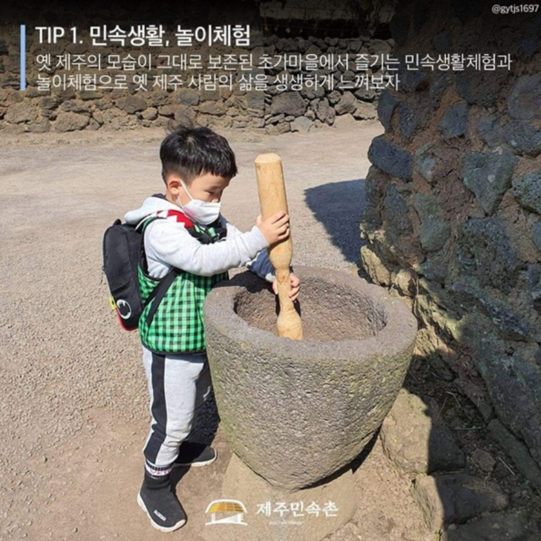 옛 제주의 모습이 그대로 남아있는 초가마을에서 민속생활체험과 놀이체험을 해보자~!